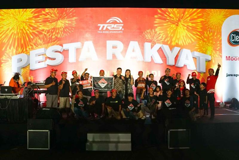 In an effort to raise public awareness of the TRS brand, Tiga Roda Spareparts held a “People’s Party” event with the national “KMRTI” (Indonesian Three-Wheeled Motorcycle Community) represented by KMRTI Chairman Sistiono. The event was also attended by KMRTI Sidoarjo Raya members, represented by Azzam, and “KMRTI” members from various cities in East Java to celebrate Tiga Roda Spareparts’ second anniversary.